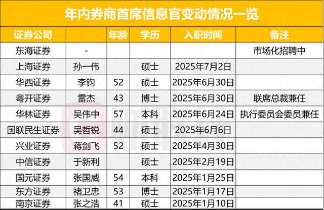 2025年以来,券商董事长、总经理等核心高管的变动已成常态,首席信息官的职位调整同样频繁。