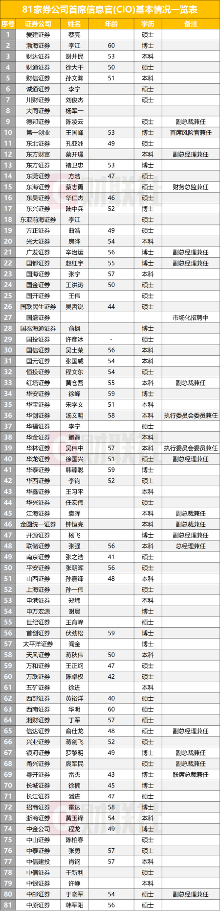 81位券业CIO,最年轻的40岁